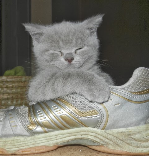 Nu är det i full fart i köket när kattungarna rusar runt och leker. Sanna föredrar torrfodret fortfarande men kan smaka på det andra lite grann och Calle gör tvärtom. När jag gör i ordning maten kommer han genast springande och vill ha. Han har ökat rejält i vikt också, väger idag 785 gram och Sanna 718 gram. Jag hittade några små korgar som jag tyckte skulle passa till kattungarna, men vem ville ligga där. Jo, Zeeta försökte klämma sig ner i den lilla korgen. Ta några foton på dem är inte lätt. De är inte så samarbetsvilliga.
